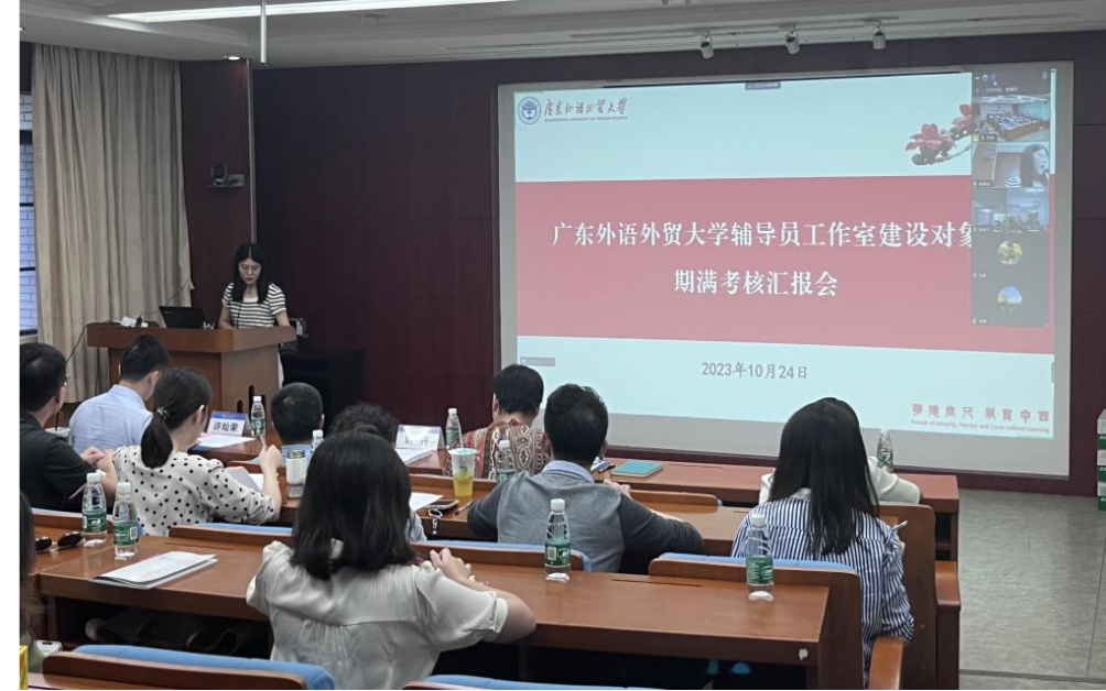 为了进一步加强我校辅导员队伍建设,为辅导员职业化专业化搭建示范引领平台,建设和培育具有我校特色的学生工作品牌。10月24日,我校在白云山校区六教B108室召开首批辅导员工作室建设对象期满考核汇报会。学生工作部长国佳、副部长叶开出席,会议邀请广东省骨干辅导员工作室主持人许灿荣、肖孟琦担任评委,首批辅导员工作室建设对象成员以及第二批辅导员工作室申报人员参会。