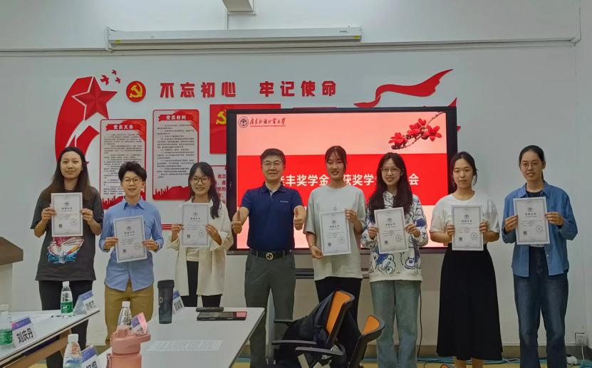 谭秋云副书记代表学校向阎卫刚校友回归母校表示了热烈的欢迎并向在座学生介绍了阎卫刚校友爱校荣校的事迹。叶祥杰科长宣读了“佳丰奖学金”表彰决定,并由阎卫刚校友向获奖学生颁奖。
