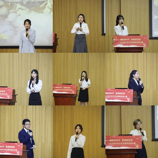 大赛分为初赛、复赛和决赛,初赛由各学院自行组织,65人参加复赛,9名来自不同学院的同学晋级决赛。决赛现场,同学们以生动的语言、典型的事例、鲜明的观点和饱满的热情,以小见大、深入浅出,追忆红色历史,讲述中国故事,围绕助力乡村振兴、坚定文化自信、青年志愿服务、弘扬英雄精神、广州起义历史等主题,深刻阐述对习近平新时代中国特色社会主义思想的理解,呈现了一堂堂有高度、有深度、有朝气的党课盛宴。
