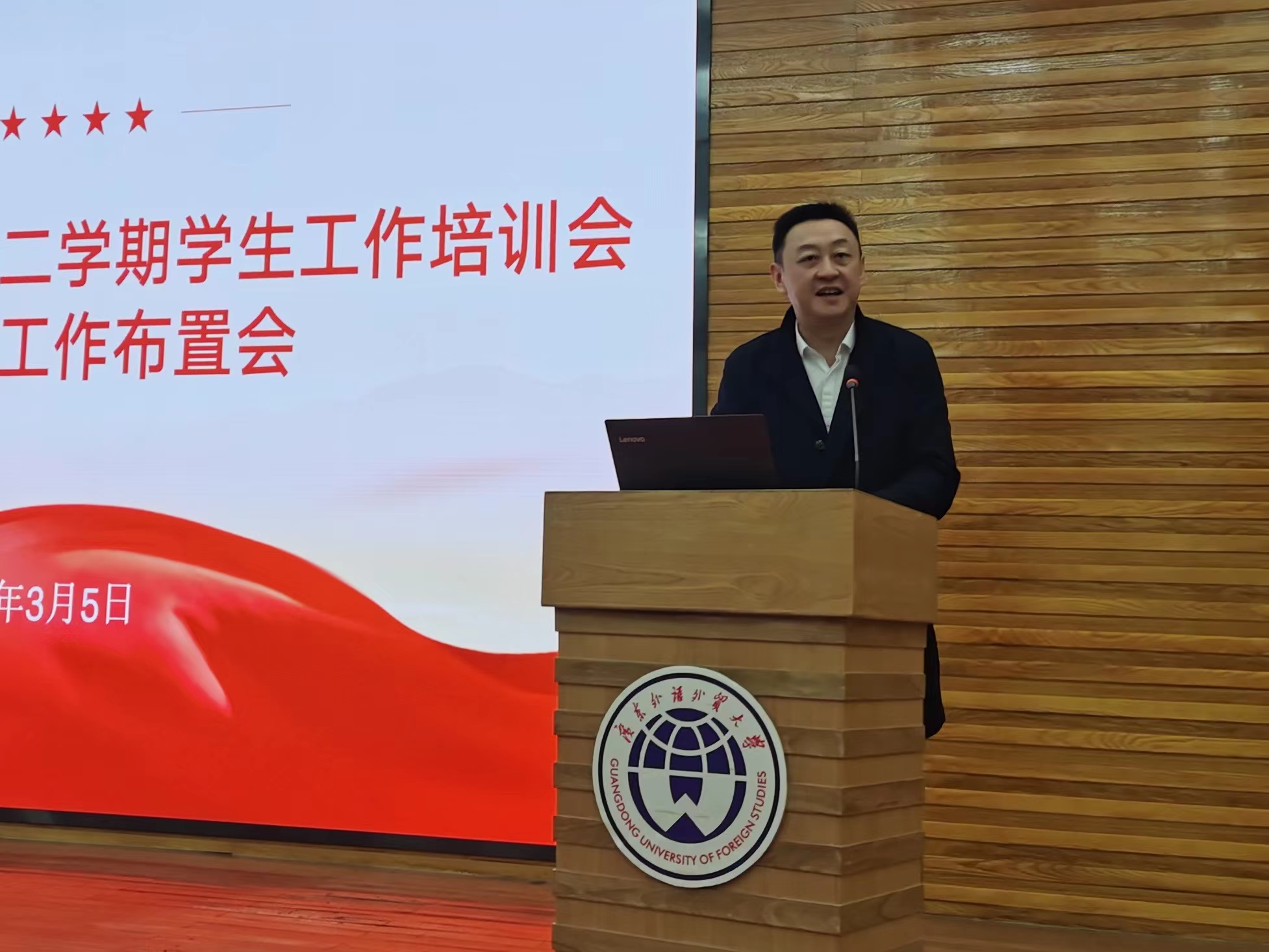 3月5日上午,我校2023-2024学年第二学期学生工作培训会暨学生工作布置会在白云山校区图书馆报告厅举行。校党委副书记唐锐出席会议并讲话,学生工作部、校团委、学生就业创业中心全体成员,各学院分管学生工作负责人,全体专兼职辅导员参加会议。