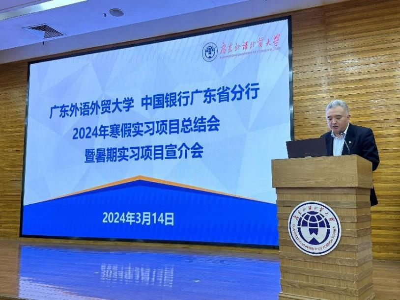 广东省分行人力资源部伦路总经理表示,中国银行广东省分行和广东外语外贸大学自1997年以来便保持着合作互动的友好关系,2024年的寒假实习是双方持续加强交流合作的重要体现。在即将到来的2024年度暑假实习项目中,校企双方将进一步扩大实习的规模与体量,打造以“社会人”和“专业人”为主题的实习项目,共同促进提升人才培养质量。