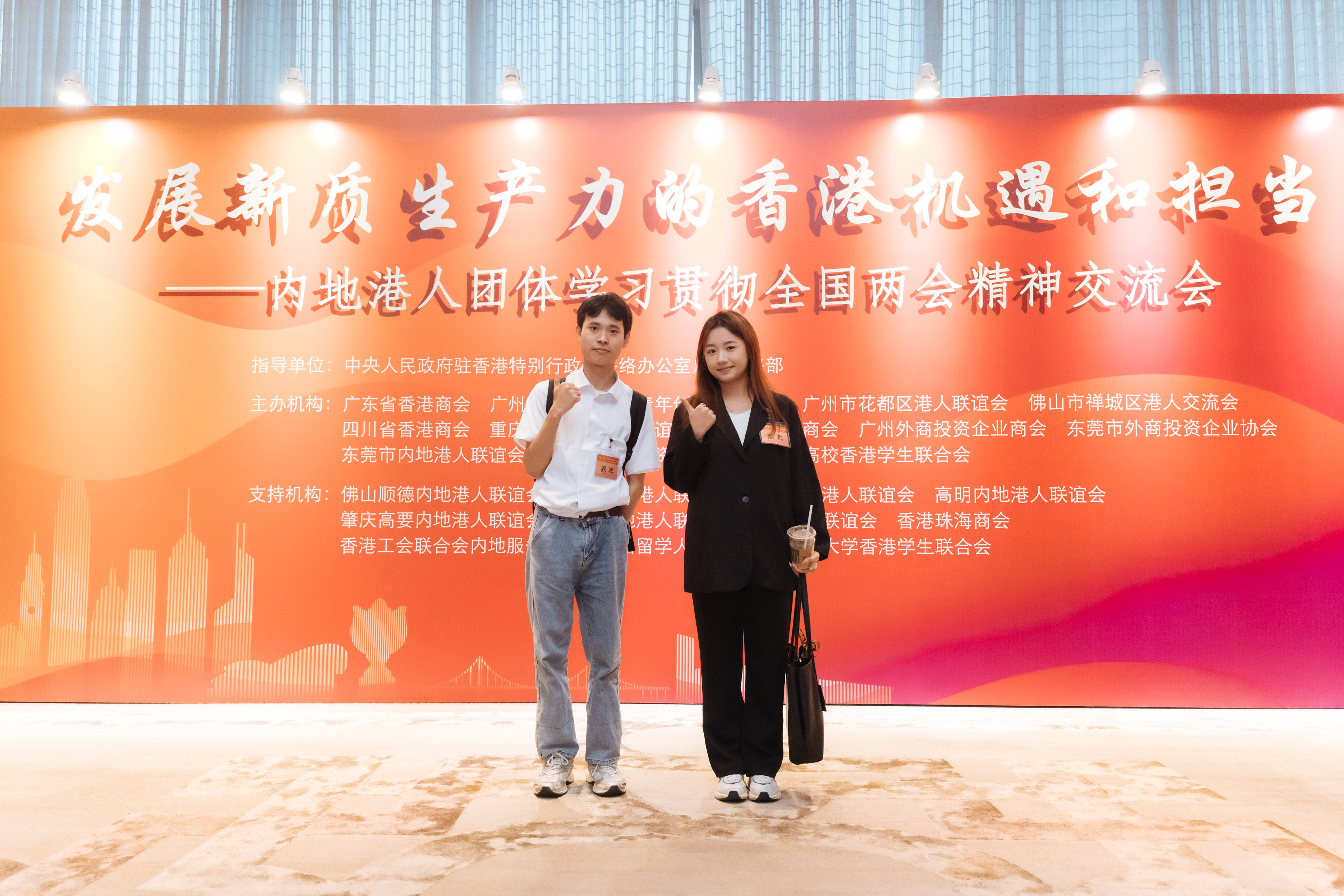 全国政协副主席梁振英与三位港区全国人大代表、政协委员结合全国两会精神,围绕“发展新质生产力的香港机遇和担当”,向现场300多位与会内地港人代表作深入解读和分享。我校港生代表樊浚谦、陈晋菲同学参加了本次交流会。