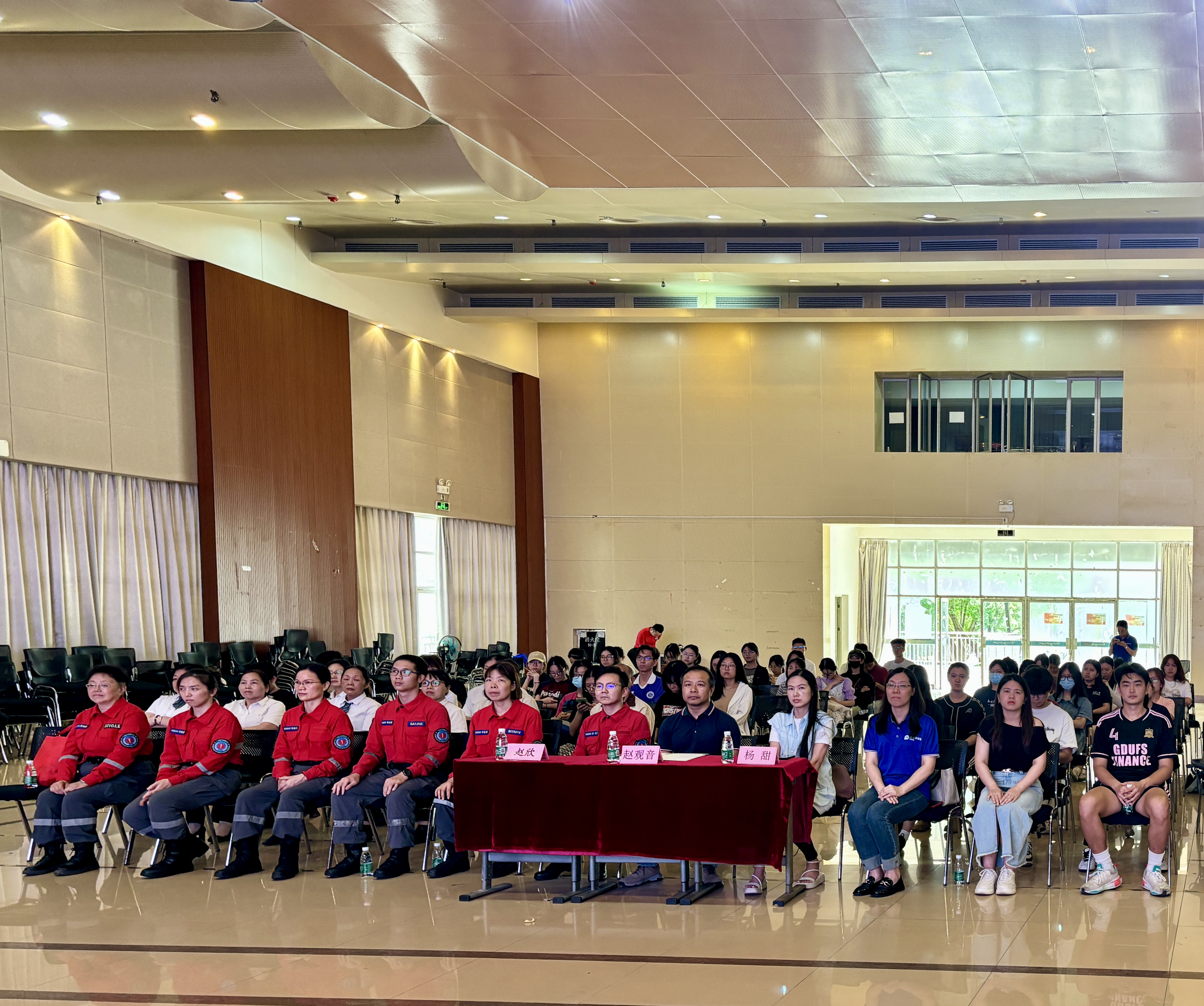 为提高我校师生应急救护能力,建设平安校园,5月11日下午,我校学生工作部联合中国太平洋财产保险股份有限公司、广州蓝天救援协会在大学城校区学生活动中心开展校园医疗急救培训活动。学生工作部副部长赵观音、中国太平洋财产保险股份有限公司团课综合市场部副经理杨甜、广州蓝天救援协会培训部部长赵欣及相关工作人员出席本次活动。大学城校区近百名学生、宿舍管理人员参加本次培训。