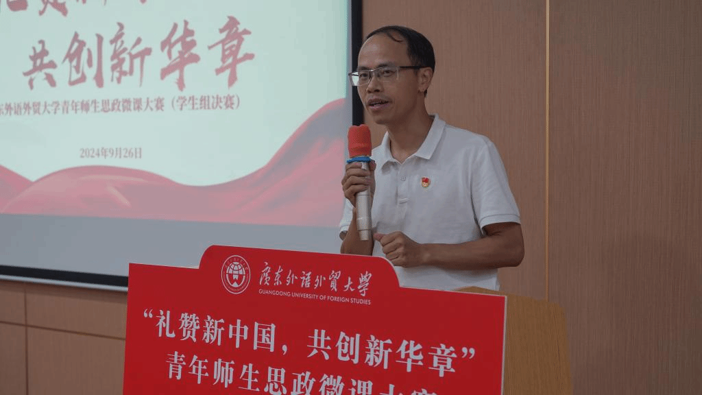 大赛开场前,国佳作开幕致辞,她表示,习近平总书记在全国教育大会上指出建设教育强国,应当具有强大的思政引领力、人才竞争力、科技支撑力、民生保障力、社会协同力、国际影响力。广外一直有忠诚服务国家的使命担当,涌现出无数服务祖国、服务社会的优秀学习典型。她希望通过本次思政微课大赛,一起讲爱国情、强国志、报国行,师生一起共聚力量,将个人成长与发展投身到祖国建设中去。