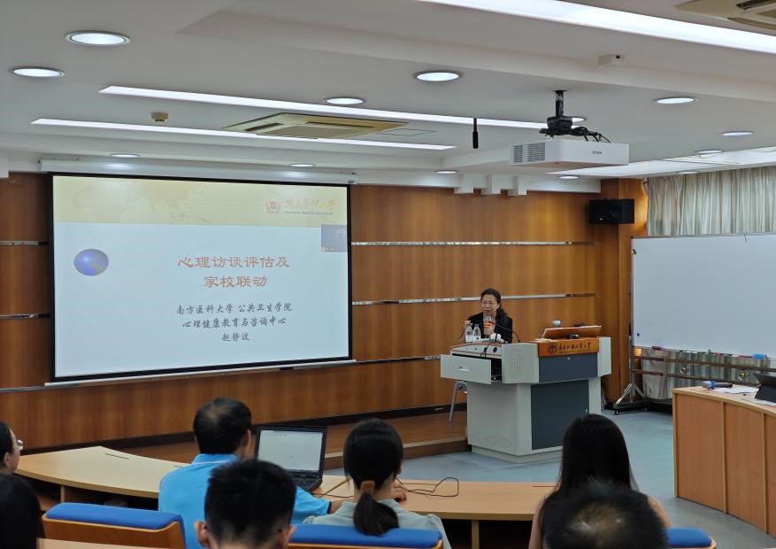 为维护学生的心理健康,并持续促进家校共建。2024年10月16日上午,由广东外语外贸大学心理健康教育与咨询中心(以下简称“心理中心”)举办的心理访谈评估与家校联动专题培训在白云山校区九教203举行。本次培训由心理中心副主任黄红清主持,南方医科大学心理健康教育与咨询中心主任赵静波教授主讲。