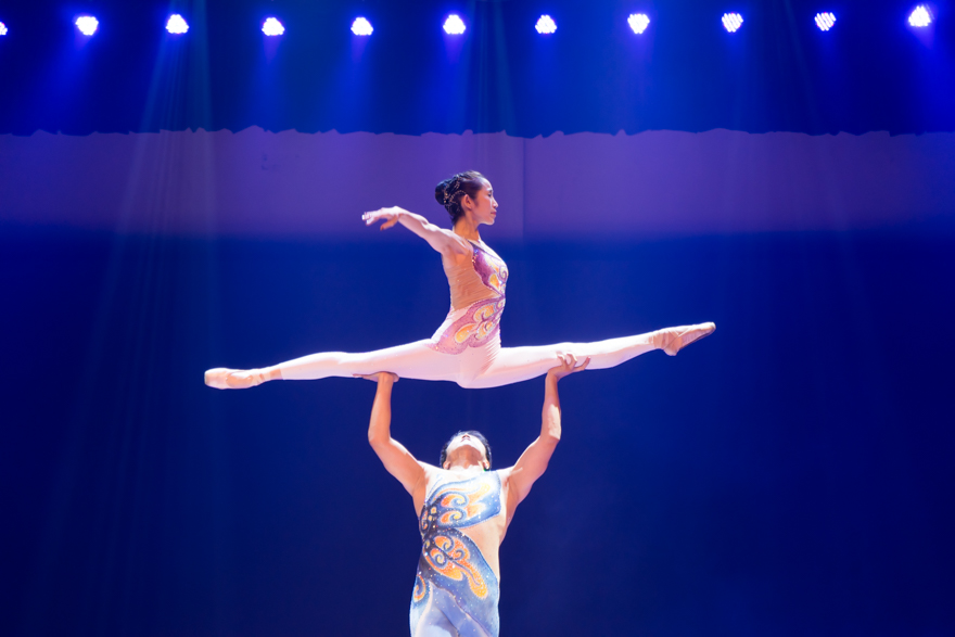 首个演出的,是国家一级演员、中国杂技家协会副主席魏葆华和吴正丹夫妇带来的杂技舞蹈《梁祝》。两位艺术家默契的配合着,以优雅柔美的舞姿为观众展现了梁山伯与祝英台对美好情感的坚守与义无反顾,观众席响起多次热烈的掌声。