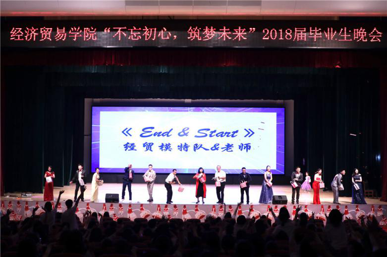 经贸学院2018届毕业生晚会于2018年5月11日19:00在南校区大会堂隆重举行。出席本场晚会的嘉宾有:经济贸易学院院长张建武,党委书记赵烨,副院长许陈生,党委副书记魏传文,办公室主任陈哲,校团委骆泽深,纪委、监察处吴廷广,经济系老师陈川,学院教务办马华玲,研究生辅导员夏立红、柯树煜以及团委书记唐静,辅导员曾恒、杨广超和刘晓琪。院长张建武发表简短致辞,祝愿各位毕业生们毕业快乐,有空常回家看看。