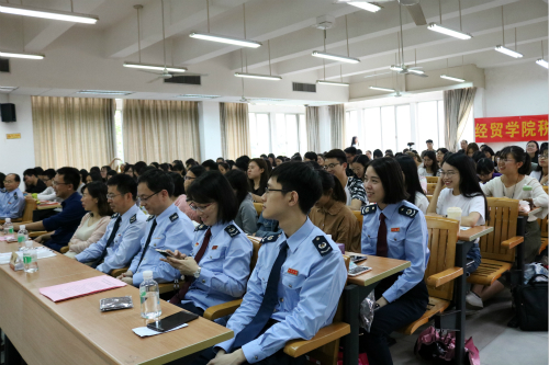 2018年4月19日,广州国地税稽查局“税法进校园”主题活动在南校区教学楼G206举行。本次活动到场的嘉宾有:广州地税稽查局副局长、注册会计师、经济师冯海昆,副局长钟翰文,办公室主任邓毅敏,广州国税稽查局综合科科长邹敏,广东外语外贸大学经贸学院党委书记赵烨,税收学主任刘明勋老师和经贸学院辅导员唐静老师。
