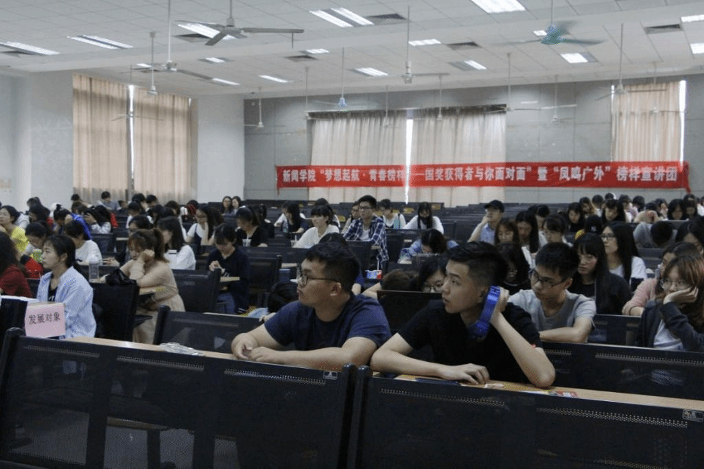 为发挥优秀榜样的模范引领作用,激励学生的拼搏精神,4月19日,新闻学院“梦想起航·青春榜样——国奖获得者与你面对面”暨“凤鸣广外”榜样宣讲活动在教学楼F208举行。新闻学院院长杨魁、党委书记黄秀娟、党委副书记黄石胜、团委书记陈博菲、辅导员张维、党校第6期发展对象培训班学员、国家励志奖学金及三好学生标兵获得者和17级全体学生参加了此次活动。