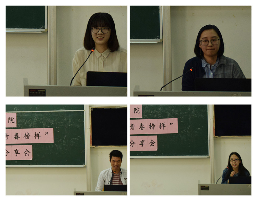 四位优秀学子轮流上台发言,分享自己获得成功的经验。大四的朱家奕以“脚踏实地,仰望星空”为主题鼓励同学们脚踏实地地学习,努力过好每一天,同时要树立远大理想,敢于大胆追梦。朱家奕现已通过律考,并考取了中国政法大学的研究生。