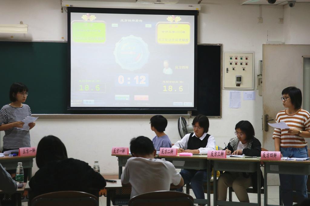 辩论赛初赛共分立论、质辩、对辩、小结、自由辩论、总结陈词六个主环节。在比赛中,辩手们都做了充分准备,言谈举止彬彬有礼,无论是己方的论点陈述还是面对对方辩手的犀利提问,都胸有成竹、从容面对。辩手们旁征博引,贯古通今,层层深入,引人入胜,带来了智慧与思维的精彩碰撞。