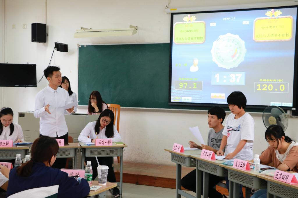 比赛分六场进行。14点整,三场比赛率先举行。其中,1802班和ACCA1802班表现尤为精彩,双方围绕“是否应该倡导年轻人为自己而活”进行了激烈且精彩纷呈的辩论,辩手口齿伶俐,措辞清晰,积极交锋,难分伯仲。15点30分,两场比赛随后举行。其中,1804班和CIMA班围绕着“法律与人情有所/并不相悖”展开的辩论使人加深了对法律与人情的理解,其辩论深入社会实例,言辞恳切,另有一番风味。