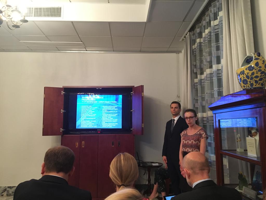 波兰高校的代表们率先介绍了各自学校的优势与需求,强调了波兰先进的教育理念和众多使用英语授课的课程,希望扩大与中国高校在交换生方面的合作。