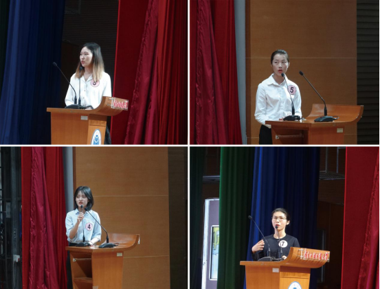 首先是研究生组比赛。比赛分为两个环节,分别为演讲配音和图片阐释。在第一个环节,选手们选取了风格多样而意义丰富的题材,用自信的姿态和清晰准确的语音给观众留下了印象深刻。在图片阐释的环节,选手们沉着淡定,在极短的准备时间内组织好语言和内容,流利地叙说着自己对所选图片独特的见解,赢得阵阵掌声。其中,倪诗玮同学从图片出发,对“键盘侠”的行为和性质进行了剖析,给出了颇有深度的看法;向祎清同学则由图联系到部分商人不顾社会影响和人民的利益、只求私利的行为并对其进行了批评,同时还号召现场观众积极维护社会利益,拒绝唯利是图。