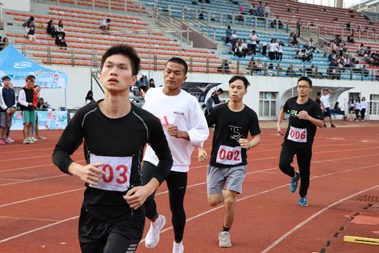 短跑比赛过后,长跑实可谓是对耐力和体力的巨大考验。800米长跑中经贸“巾帼”们毫不逊色,第二场比赛的4号选手,来自经济1802的朱鑫,凭借顽强的毅力,反超对手后成功拉出距离,一举成为本届院运会的女子800米比赛冠军。我们将目光移向男子1500米决赛,第二组比拼十分激烈,领先的三名选手可谓神仙打架,不断的反超与被反超让观众直呼过瘾,最后来自国贸1701的林康杰夺得桂冠,赢得满堂喝彩。