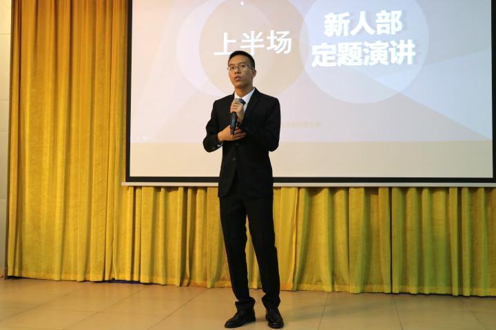 随后,低年级组首先进行命题演讲。题目是「和」和「夢」,选手们从中任选一个题目进行演讲。陈泰杰同学选择了「和」这一题目,一整场演讲下来,他自信从容,针对日本的国民性,通过他们面对自然灾害时的团结精神来体现日本的「和」,又举出反例,更加深刻主题。而在即兴演讲环节中,他更是表现出了强大的心理素质和口语能力,以“现在,最想要的东西——语言的能力”为主题,将一场流畅自然的演讲呈现给了观众,场内响起阵阵掌声。