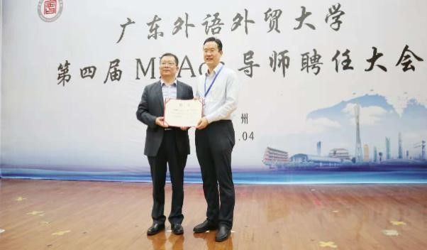 随后,刘院长简要介绍了广外MPAcc近四年的发展情况。广外MPAcc学位点设立于2015年,2016年在国内200多所设有MPAcc教学点的高校中脱颖而出,成为国内三所“国际化+会计”综合改革试点单位之一。招生规模从2015年的80人增加至2018年的135人,报考人数逐年攀升,分数线在全国名列前茅。另外,刘中华院长对与会的导师和学生们提出了殷切的期望,他希望导师们继续关心和支持广外会计学科的建设和研究生的培养,尽心尽责,认真培养和指导好学生,为学生未来的发展创造好条件;希望同学们脚踏实地,刻苦学习,扎实自己的基本功,奋力追求自身成长,成为能为社会贡献价值的会计领域高层次应用型人才。在本次聘任大会,刘中华院长为广外第四届MPAcc新聘40名校内外导师们颁发聘书,并合影留念。