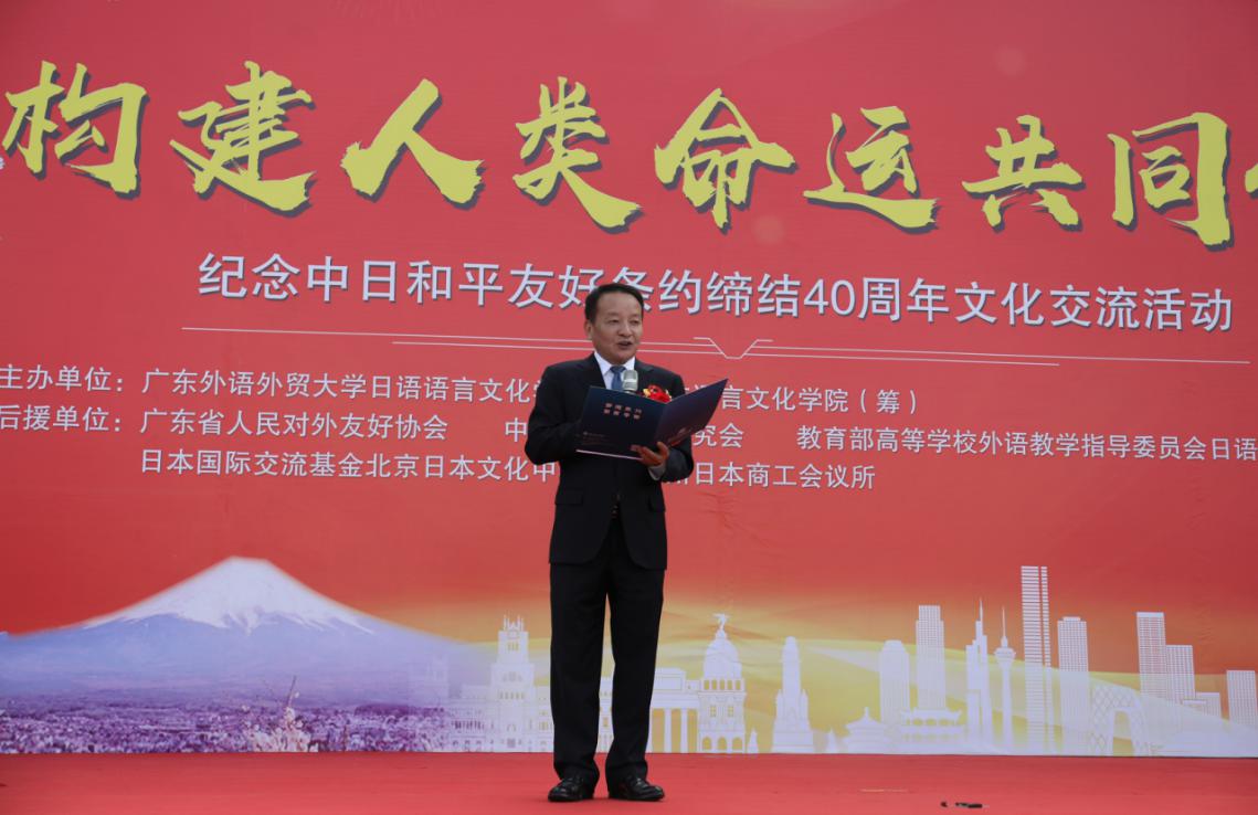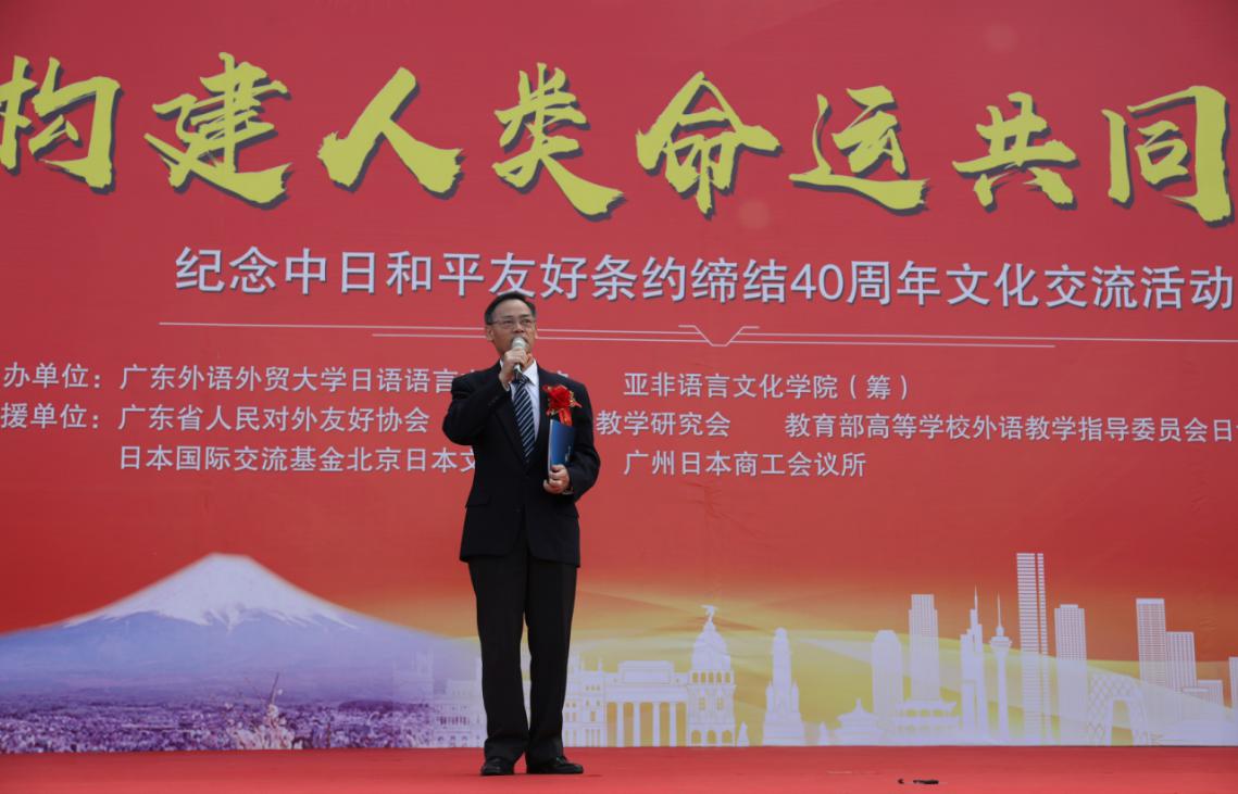 又讯 我校日语语言文化学院、亚非语言文化学院(筹)主办的“构建人类命运共同体”——纪念中日和平友好条约缔结40周年文化交流节于11月24日举行。此次文化节由我校日语语言文化学院、亚非语言文化学院(筹)主办,广东省人民对外友好协会为指导单位,并得到中国日语教学研究会、日本国际交流基金北京日本文化中心、广州日本商工会议所等单位的支持。
