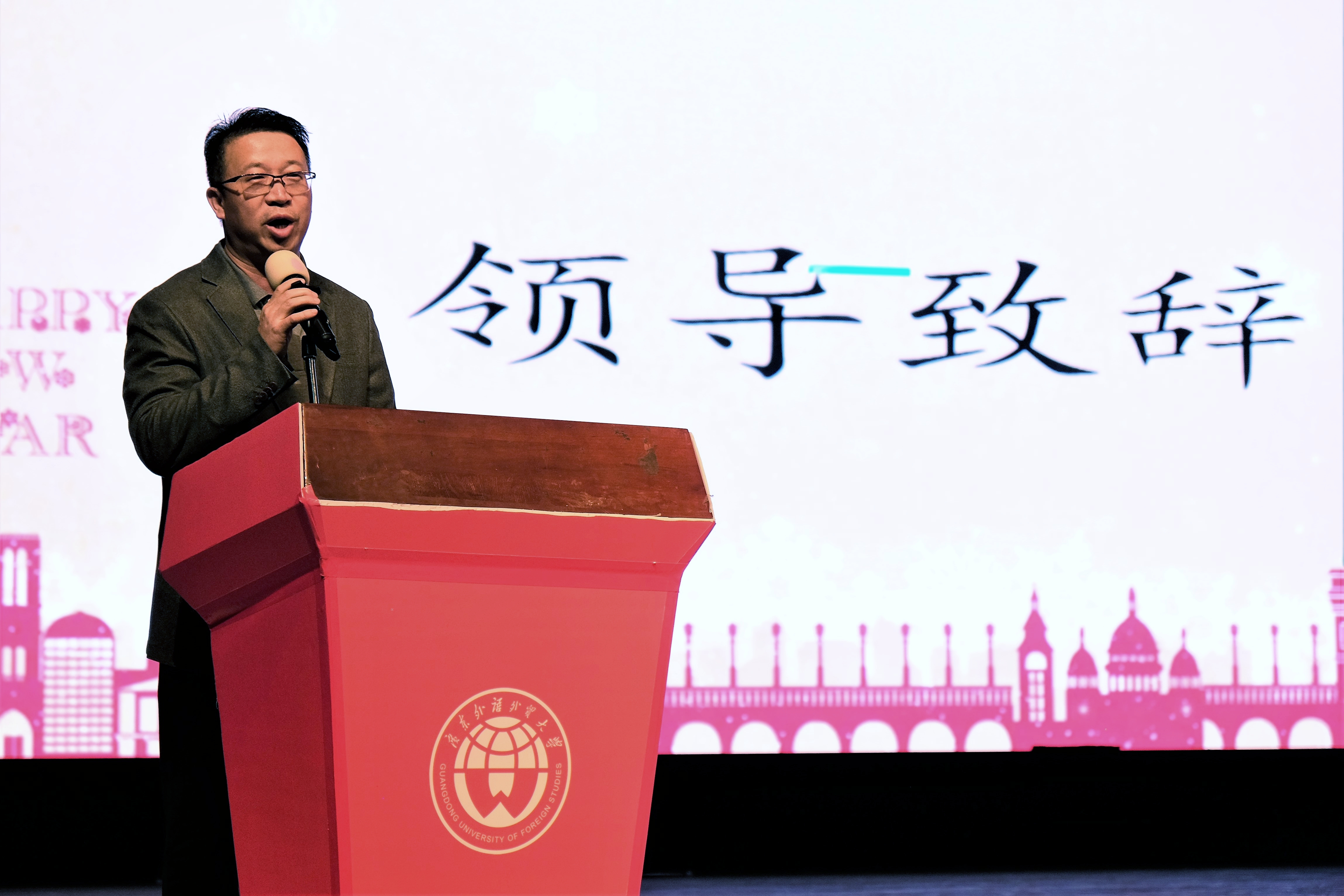谢伟光书记首先表示对到场嘉宾的热烈欢迎,与大家一同回顾会计学院近年来取得的成就,表达对平台建设不断创新、会计学院不断进步的感慨。同时他希望新的一年中,会计学院全体师生携起手来,秉承卓越、诚信、包容、自信的广外价值观,建设好会计学院。