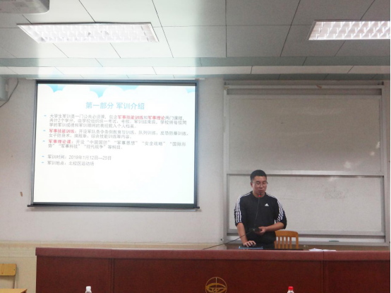 最后,17级的师兄师姐给同学们分享了军训的经验。他们从饮食、着装、保暖等方面分享了自己的经验,并鼓励大家秉持着艰苦奋斗的精神,严格自律,全力以赴。