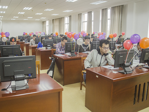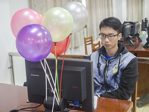 3月24日下午,广东外语外贸大学第15届大学生程序设计大赛在实验楼A403正式举行。本次大赛共有48名学生参加,共设10道题目,共计4小时,每当选手们成功解决一道题,电脑旁便会插上一个相应颜色的气球宣告战果。