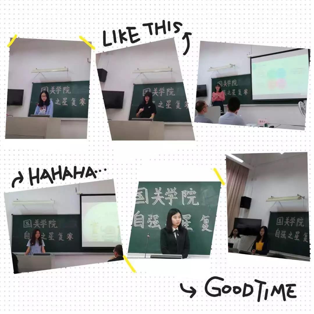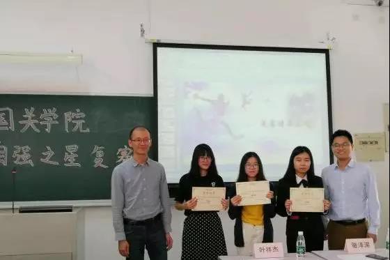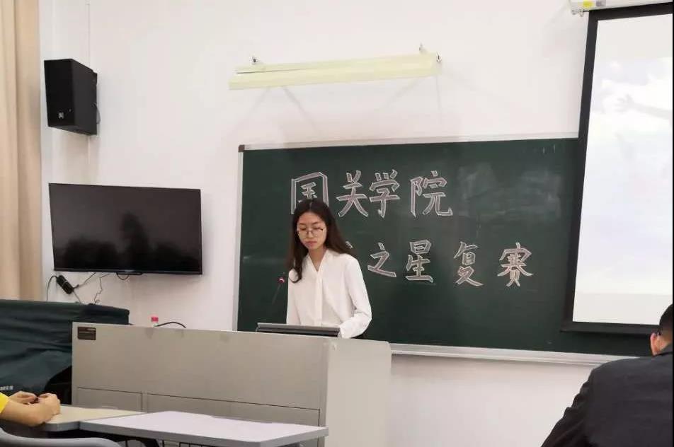 4月4日14:30,在教学楼D108开展了国际关系学院自强之星复赛。学生处勤工科科长叶祥杰老师,国关学院团委书记骆泽深老师担任活动评委。
