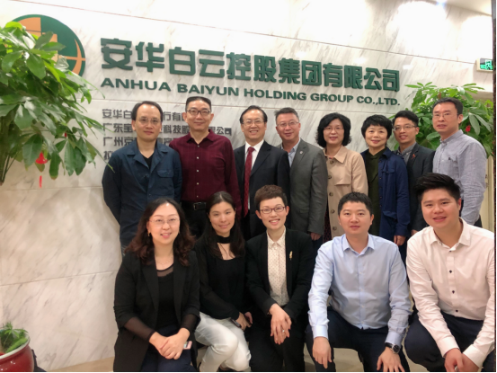 4月12日上午,受我校1998级财务管理专业校友邵彩珠邀约,广外会计学院党委书记谢伟光老师一行5人调研校友企业-安华白云控股集团有限公司,孙家和教授、林丹丹教授、田霞副教授、王政教授以及邓海清老师作为邵彩珠校友的课任老师代表,陪同参与此次调研。安华白云控股集团有限公司党委书记莫泽元、总经理邵彩珠、财务总监钟任平、基金股权管理事业部总经理助理丁宝平、土地规划事业部总经理陈剑华、土地规划事业部董事长助理胡静、投资管理部经理吕智得等出席此次调研活动。