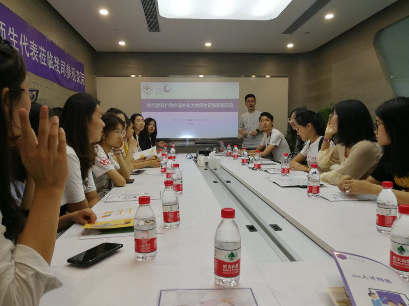 星火人才项目师资培训负责人曹朝钦老师带领同学们参观了企业总部的环境,并向同学们分享了行业选择、职业通道、面试技巧等一系列求职就业知识。