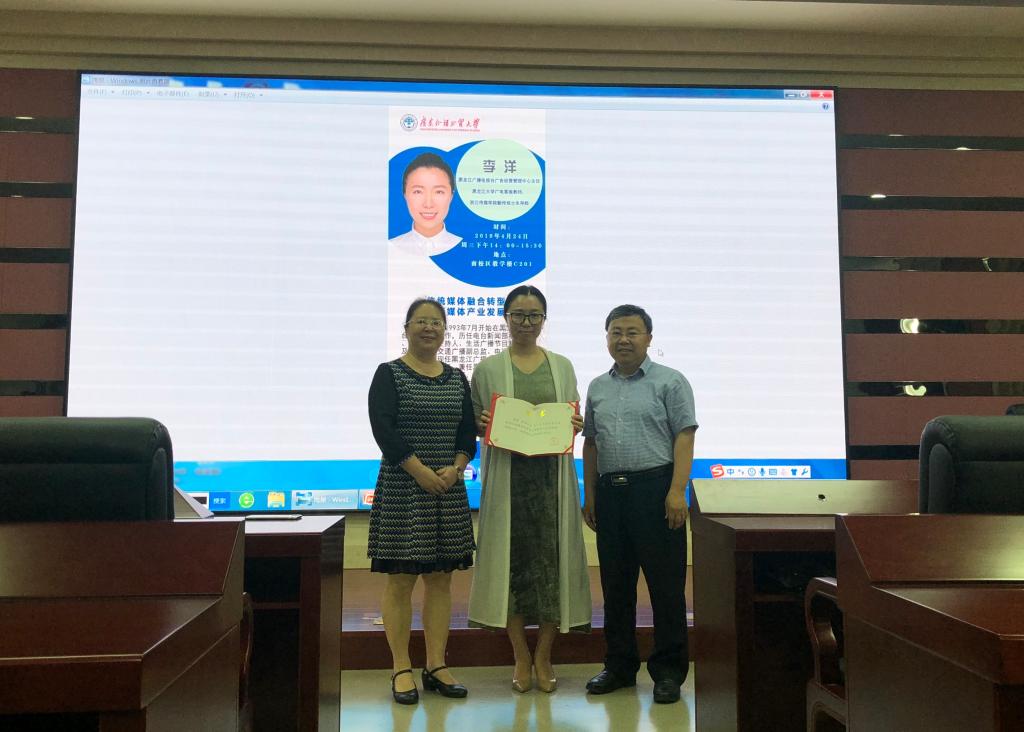 2019年4月24日下午,黑龙江广播电视台广告经营管理中心主任李洋来到广东外语外贸大学,为新闻与传播学院的学子们带来了一场别开生面的专题讲座——《传统媒体融合转型与新媒体产业发展》,并受聘为我院新闻与传播专业硕士校外导师。