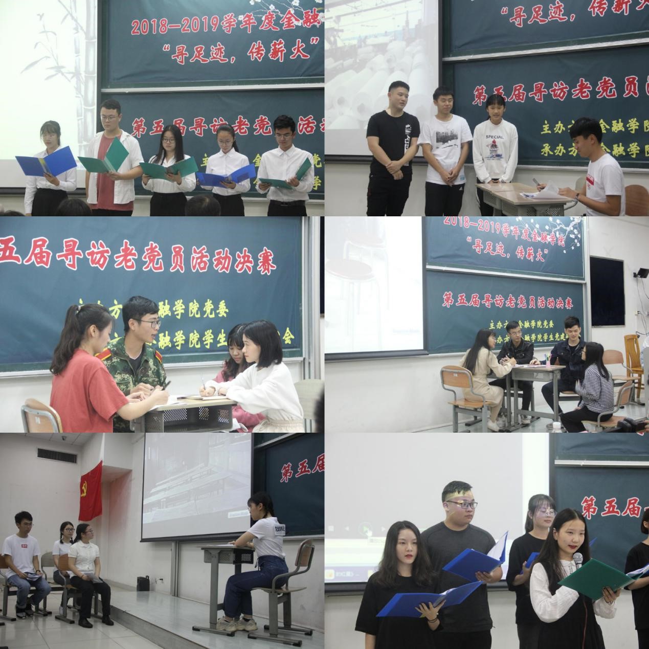 5月5日晚上19:00,由金融学院党委主办、金融学院学生党建研究会承办的金融学院“寻足迹,传薪火”第五届寻访老党员活动决赛于南校区教学楼F215举行。本次决赛邀请到学校关工委主任冯益谦,校党委特聘组织员李海丽,校党委组织部组织科张璇,经贸学院党委组织员谢铭威,金融学院党委副书记赵观音等五位老师担任评委;金融学院党委书记徐昶斌,学院学工办全体辅导员,兄弟学院学生党建代表及我院全体学生党员参加了本次活动。