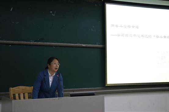在思政课的最后,郝建萍还诠释了新时代大学生如何在自己的人生道路上实现“奋斗幸福观”。她鼓励同学们作为新时代大学生要立“功崇惟志,业广惟勤”之理想,造“可堪大用,能担重任”之本领,求“百折不挠,勇往直前”之担当。