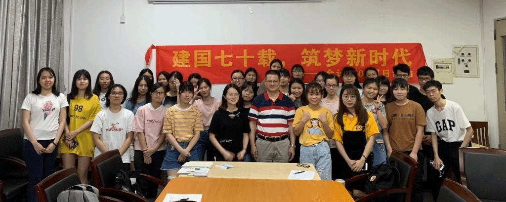第一个环节是团支书讲话。团支书发表简短讲话后宣布分享会正式开始!第二个环节是郑亚伟老师围绕“建国七十载,筑梦新时代”这一主题发言,主要分为四个部分,分别是我国成立以来的历史发展,在这建国的70年里,我国做了什么并且取得了哪些成果,在这一过程中,我们积累到了哪些经验,所积累的经验要如何与当前国情相结合。
