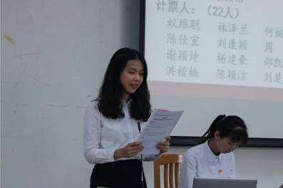 随后,23位委员候选人逐一上台发表各具特色的竞选演讲。除了自我介绍外,他们的演讲有对这一年的回顾,有对各自部门归属感的感慨,也有自己对接下来对部门、对团学的展望。他们带着坚定的目标,怀着满怀的信心,在讲台上立下对同学、对团学的承诺。在观看了精彩纷呈的竞选演讲结束后,学生代表们将经自己慎重考虑后填写的选票投到了已受检查的投票箱中,为他们心目中合适的候选人投下了自己神圣的一票。第一次投票结束后,产生了团委书记、团委副书记及其他团委委员和学生会委员名单。