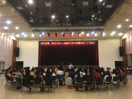 5月27日晚,由我校心理健康教育与咨询中心指导,艺术学院承办的相约鼓圈,鼓动心间——M&R大学生鼓圈活动(广外站)在南校区学生活动中心顺利举行。出席本次活动的有经济贸易学院党委副书记陈静,信息科学与技术学院/网络空间安全学院党委副书记肖锋,艺术学院党总支副书记张莉,心理健康教育与咨询中心主任阎茹。经贸学院、信息学院、艺术学院近一百名师生参加了本次活动。