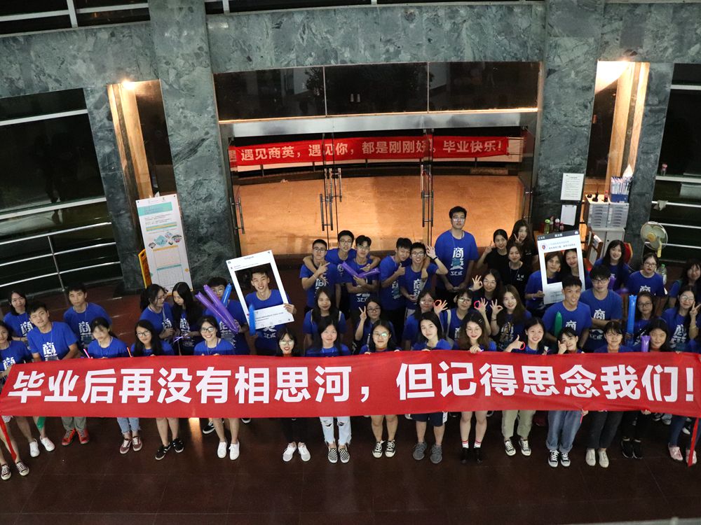 即将毕业的商英学子们在师弟师妹的祝福中走出云山会堂。离开了校园舞台,迎接他们的将是更广阔的人生舞台。
