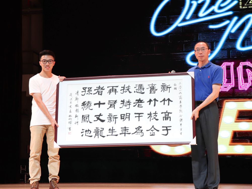 2019届毕业生们为学院献上了一份由同学自己书写的书法作品《新竹》作为感恩礼物。郭桂杭代表商英祝福毕业生们前程似锦,祝贺同学们顺利完成大学四年的学业,并对同学们四年来在不同场合为商英赢得各项荣誉表示感谢。