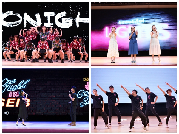 晚会节目精彩纷呈,观众们掌声不断。卢易钿和晚会总导演蔡恒博合作的相声《毕晚那些事儿》通过访谈形式,从视频拍摄、节目准备等方面说明了筹备此次晚会的后期工作之多之杂。商英歌队模仿选秀类节目的风格给观众带来歌曲串烧,尤以一曲辽远的《飘向北方》震撼全场;校歌队演唱的《Beautiful Light》、《I Believe》、《最美的太阳》、《最初的梦想》则充分演绎了“逐梦而飞”的主题。全女团和全男团的舞蹈也不甘落后,无处不在地散发着青春的魅力;后者一上场就凭一段俏皮可爱的舞蹈《爱你》引燃全场气氛。