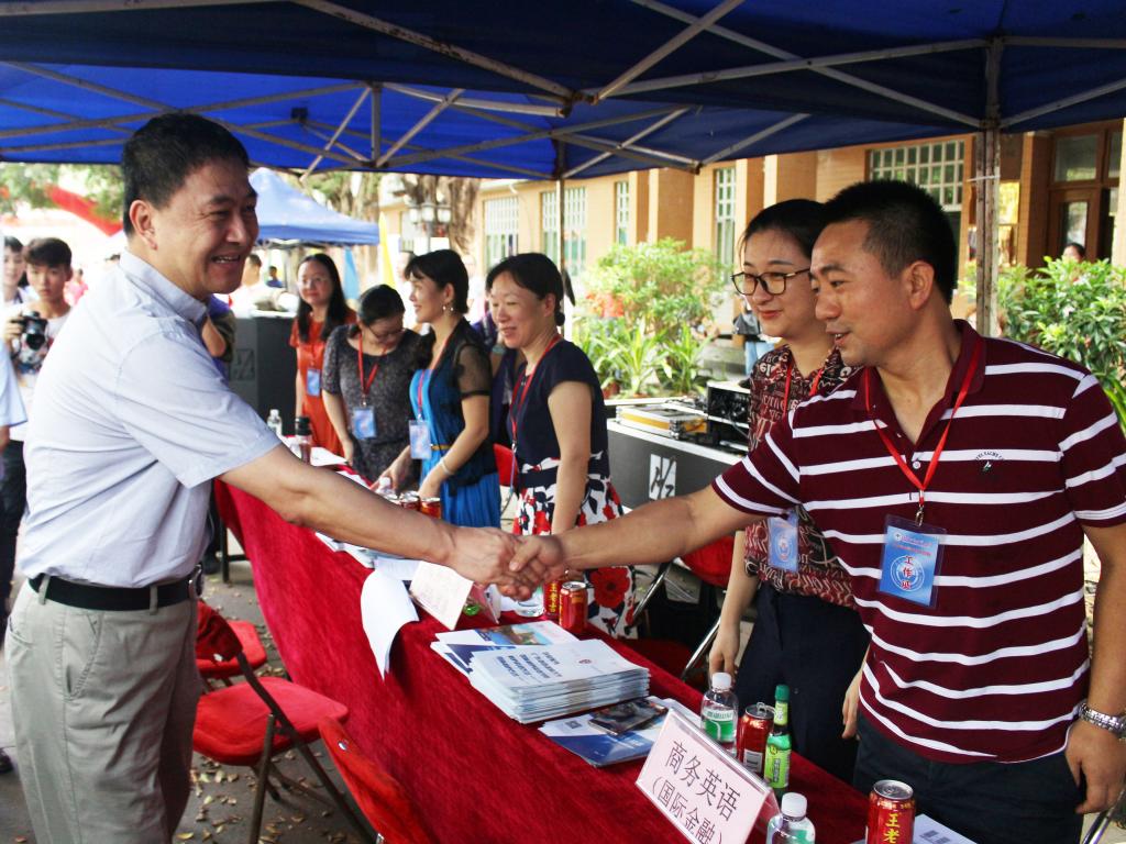 6月22日上午九点,我校第20届开放日在北校区主校道开启。商英学院党委书记王秀民等院领导、各系系主任、专业课老师代表和学生志愿者不惧骄阳,共同热情为考生和家长解疑答惑。