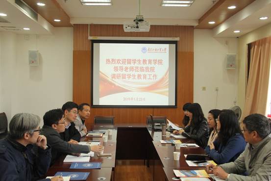 1月23日上午,留学生教育学院院长蔡红,副院长刘明、吴艳,办公室主任周泉、学生事务主任王一仟、招生主管吴嘉懿一行到金融学院调研留学生教育工作。会议在金融学院401会议室举行。金融学院院长易行健、党委书记徐昶斌、副院长杨菁菁、党委副书记赵观音、办公室主任陈健等出席了本次会议。