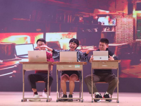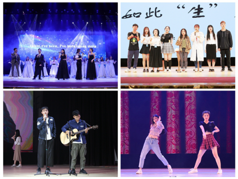 在学院艺术团舞队精彩表演的渲染下,现场气氛即刻升温。歌队的串烧曲目《C’est la joie》由深情转向欢快,寓意对19年的回忆及对20年的展望;久违的《知否知否》在器乐队的演绎下获得了新生,传统乐器古筝、竹笛与西方琴音交织使得乐曲悠扬古典又不失温暖浪漫。校话剧队的《如此“生”发》凭借幽默的台词和逼真的演技引得观众捧腹大笑。双学位创新班全体同学倾情上演舞台剧《Love story》,带领大家回顾高中的青葱岁月,细品关于初恋的青涩故事。