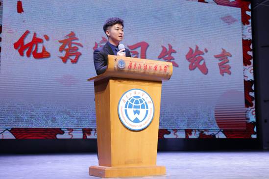 何元贵宣读表彰决定,梁洁、徐昶斌分别为经贸、金融优秀实习生代表颁发荣誉证书。