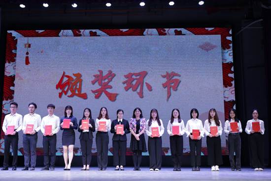 梁洁为经贸学院优秀实习生代表颁发荣誉证书
