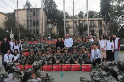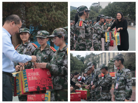 此外,我院还为每位教官和受训新生准备了丰富的慰问品。新生们以热烈的掌声与响亮的口号回应了学院的满满温情,并表示在接下来的训练中会加倍努力,以更昂扬的精神面貌,为学院增光添彩。