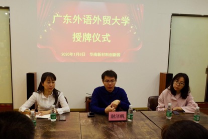 1月9日上午,商学院党委副书记沈长霞带队前往广州华南新材料创新园(以下简称“华新园”)举行实习基地授牌仪式。学院工商管理系主任孟丁,辅导员殷毅山、罗毅颖,教务秘书卢文婕出席本次授牌仪式。华新园运营总监谢泽帆、招商部长余春秀等热情接待了商学院一行。