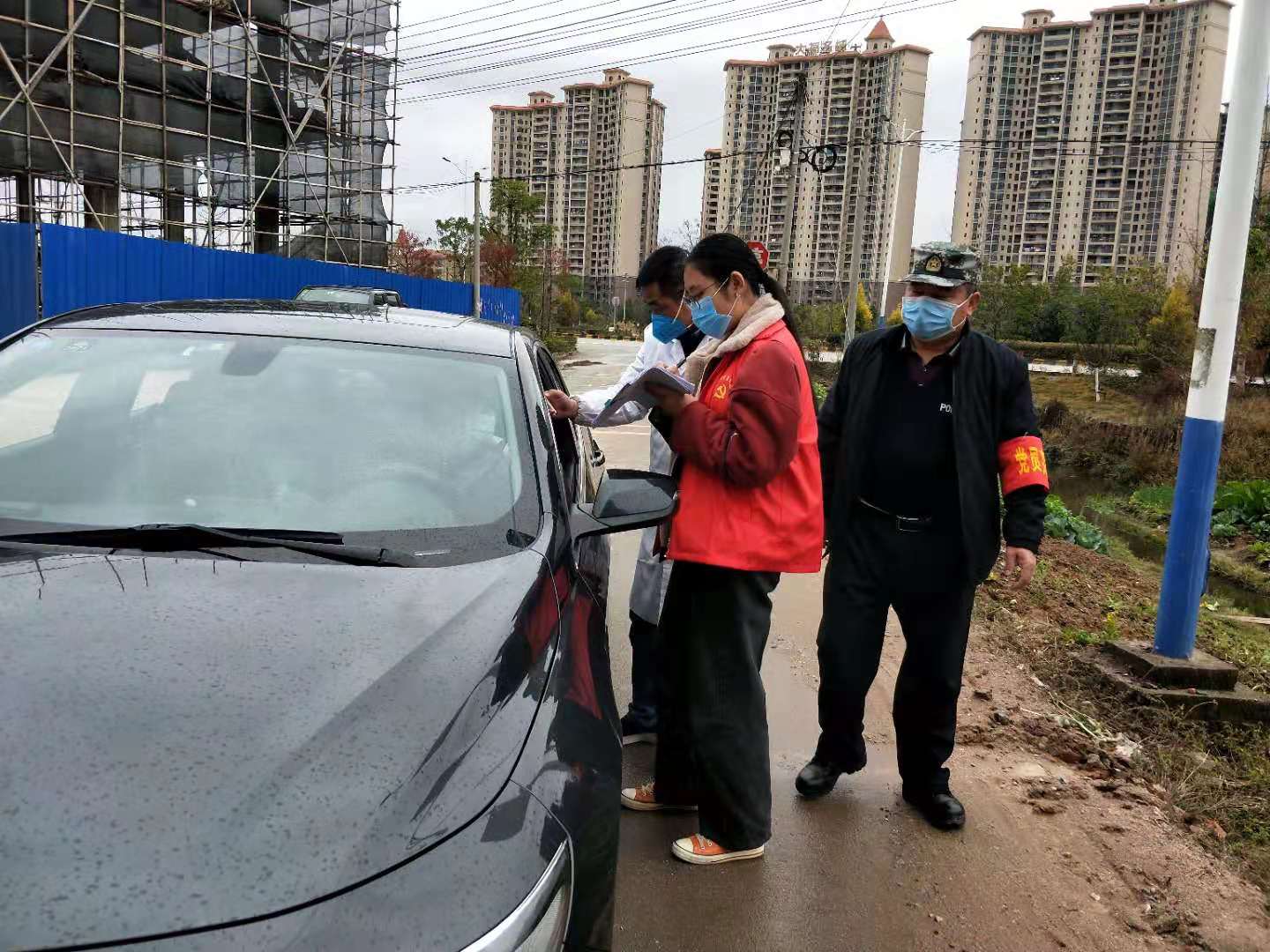 “这里有几包饼干和几瓶饮料,你们值班辛苦了,拿去补补体力吧。”一位司机拿出饮料和饼干递给村口登记车辆信息的志愿者。