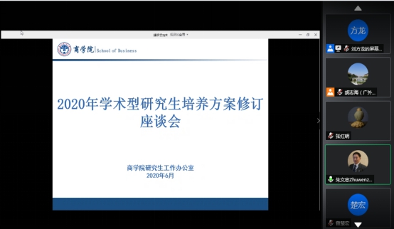 6月6日-7日,为满足数字经济发展对高层次人才培养的需求,商学院研究生办公室召开了学术型研究生培养方案修订座谈会。此次座谈会分三场进行,第一场为副教授与青年教师代表专场,第二场为学生代表专场,第三场为教授代表专场,商学院研究生办公室广泛征求了教授代表、副教授和青年教师代表以及研究生的意见和建议,为进一步完善学术型研究生培养方案奠定了基础,对推动人才培养改革具有重要意义。商学院院长朱文忠、副院长曾楚宏等出席了相关座谈会。