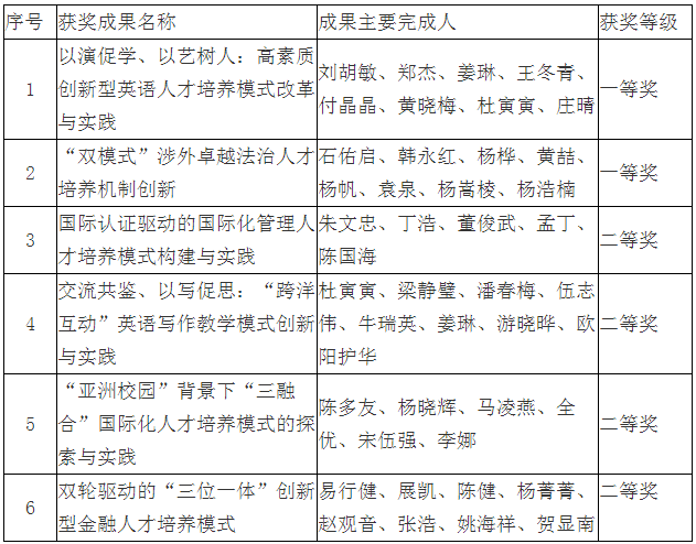 近日,根据《广东省教育厅关于公布2019年广东省教育教学成果奖获奖项目的通知》,金融学院推报的《双轮驱动的“三位一体”创新型金融人才培养模式》喜获省级教学成果奖二等奖。