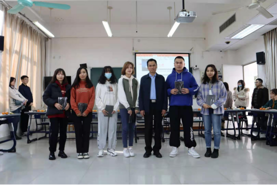 随后是获奖学生表彰仪式。魏传文为获得奖学金及参赛获奖的娜迪热、祖拜达、艾丽菲热、迪丽阿热、皮热扎提、艾丽菲热和哈德斯等同学颁发了学院纪念品,勉励同学们继续努力学习,以后在更大更广阔的舞台上展现自己的风采。