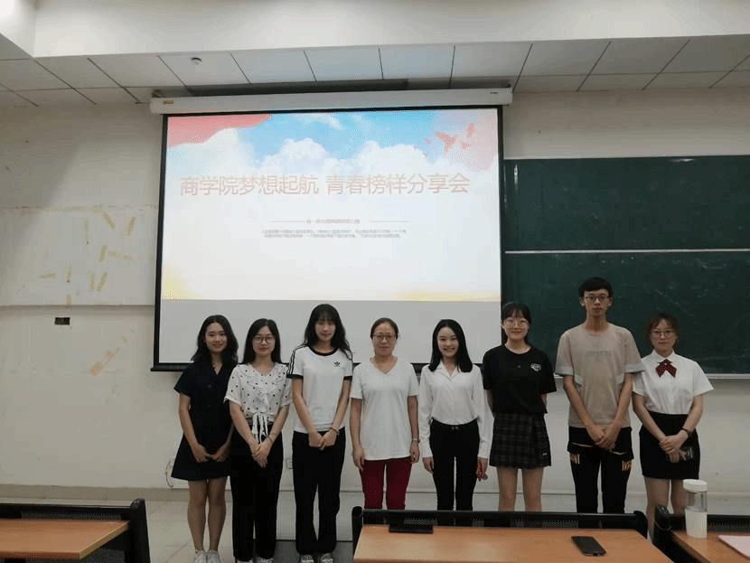 为营造良好的学风院风,激励商院学子向榜样学习,追求卓越。4月22日晚,商学院于南校区教学楼F315举办“梦想启航·青春榜样”优秀学子分享会,商学院国家奖学金获得者夏已崴、卢颖和林雪峰分别分享了成功的经验和学习的方法、先进班集体标兵国际采购1801班的班委代表分享了班集体建设的经验和心得。商学院党委副书记沈长霞,辅导员秦雨、方瑞芬出席了分享会。