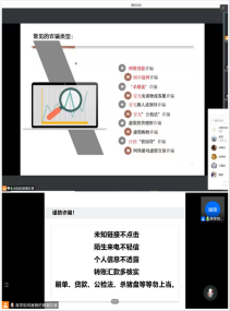 为增强商学院学生防诈骗意识,切实提高学生安全防范能力,构建和谐平安的校园环境,6月15至18日,商学院各年级在线上召开反诈骗知识宣讲会。各年级辅导员担任宣讲员。